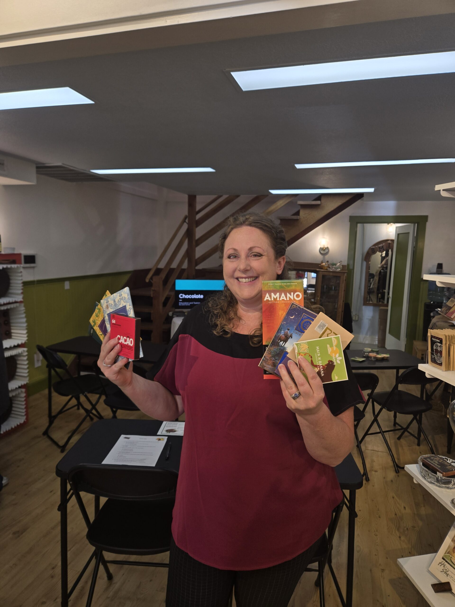 What a great chocolate tasting today at @xocolateandconfections ! We had a blast learning about all things cacao and chocolate, and tasted SO many good bars! I’m so grateful to be hosted in their event space and shop – they really try and support local artists and creators. Also they’re a great place to get craft bean-to-bar and tree-to-bar chocolate!