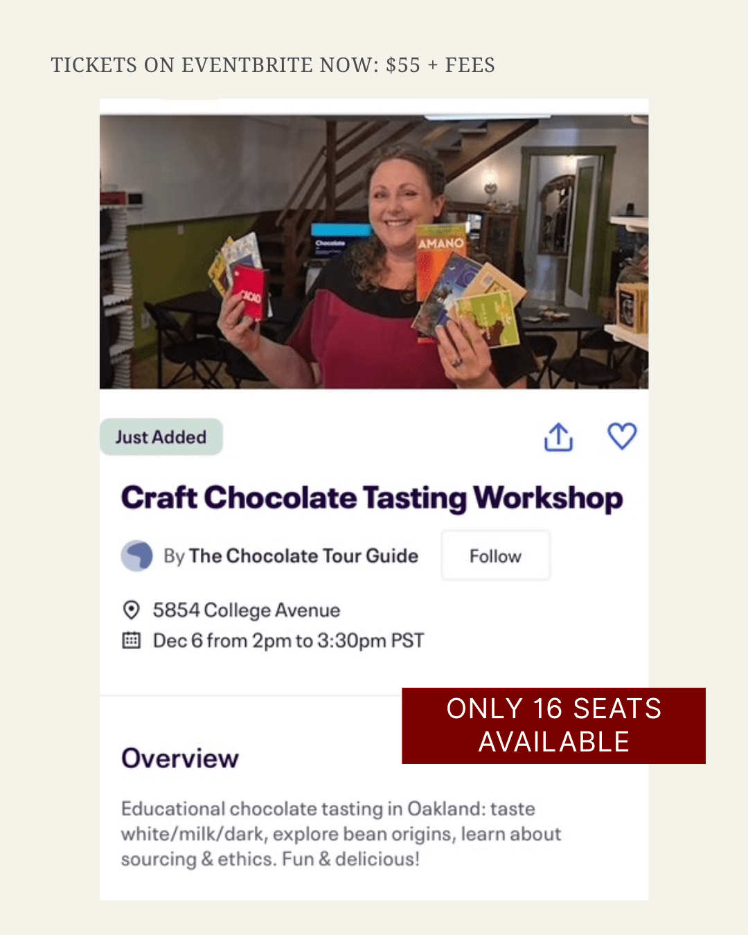 I’ll also take you through all the basics of craft chocolate- how it’s made, why it’s important, and how to recognize good quality chocolate!