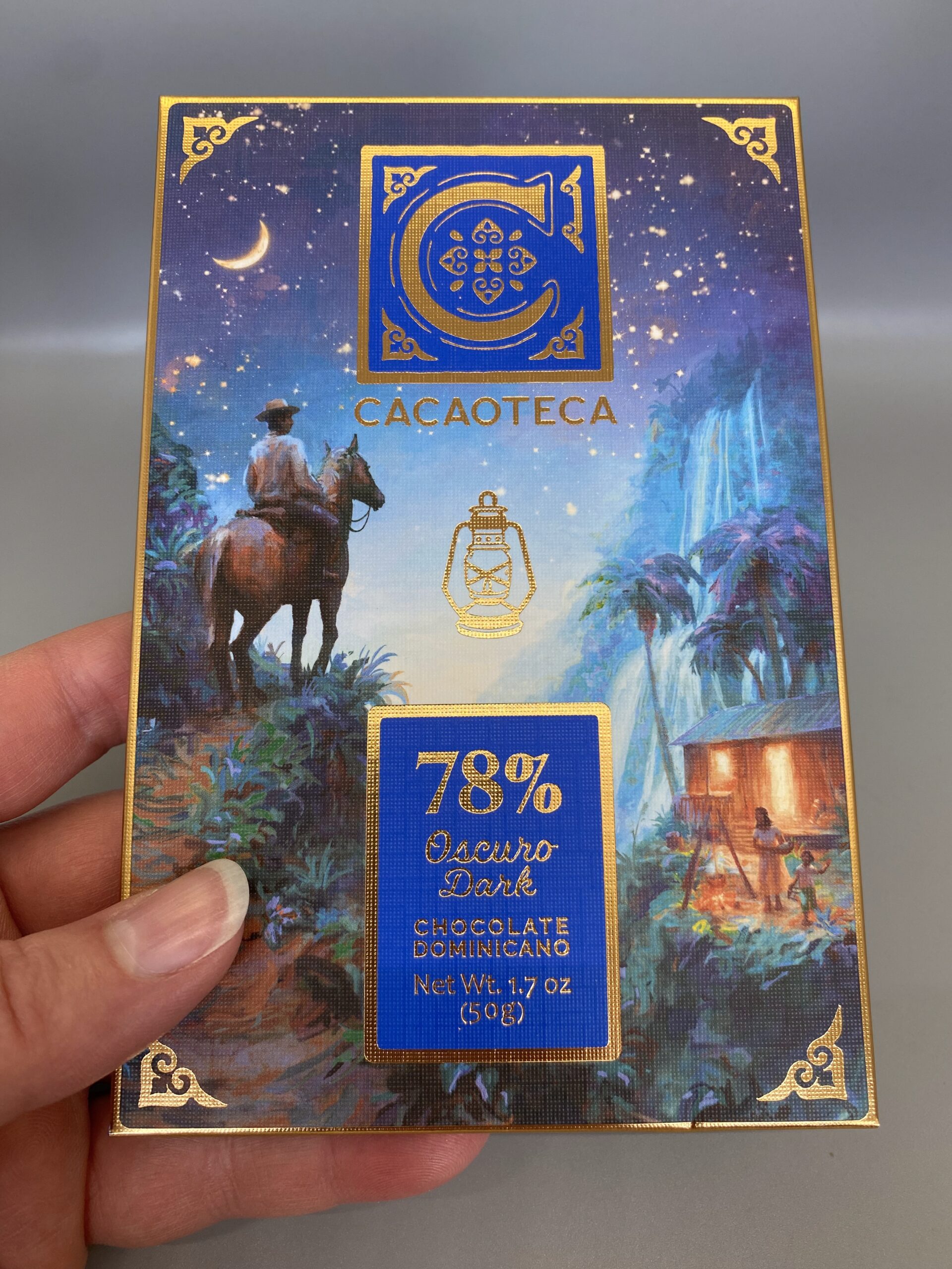 Oddly I first taste sweetness, despite it being 78%. Then the rich notes of hay, cheese, earth, coffee and red fruits (cherry) unfold, true to the nose. The flavors are intense, rugged and pleasing. It’s sweeter than I expect for 78% while also managing to be savory!
