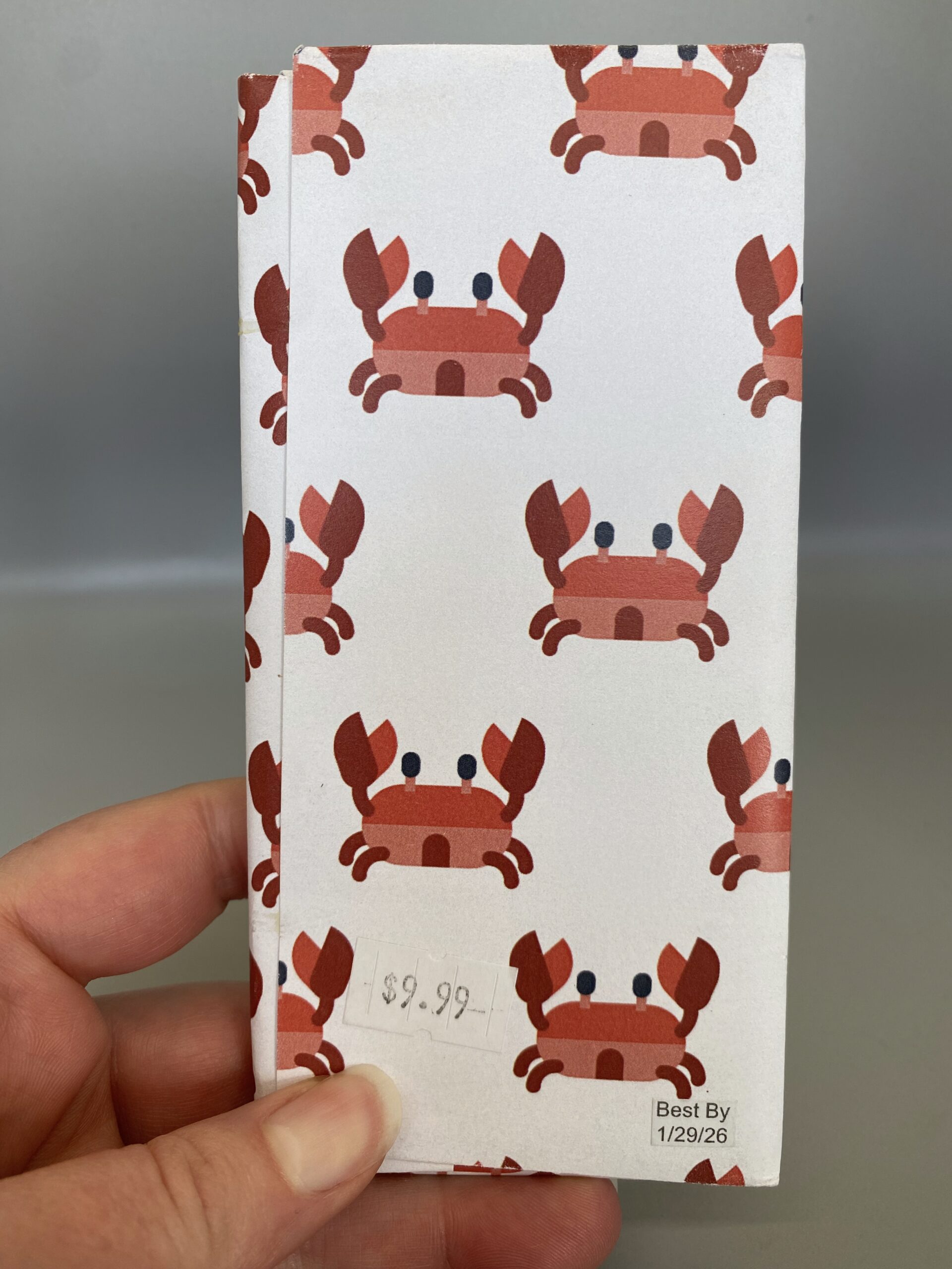First, would you LOOK at these adorable little crabs on this package! Would have been perfect for #tttt_animals week.