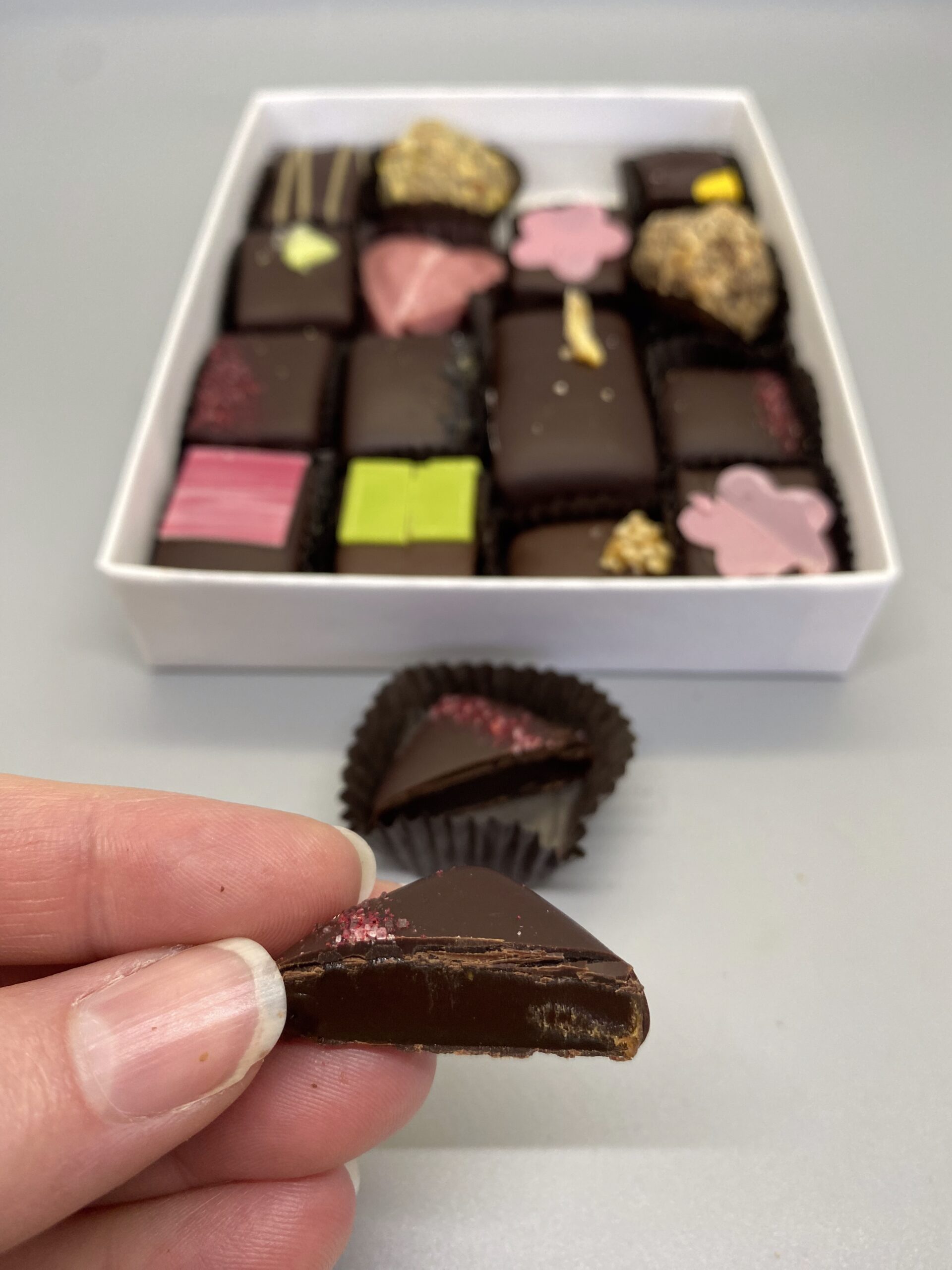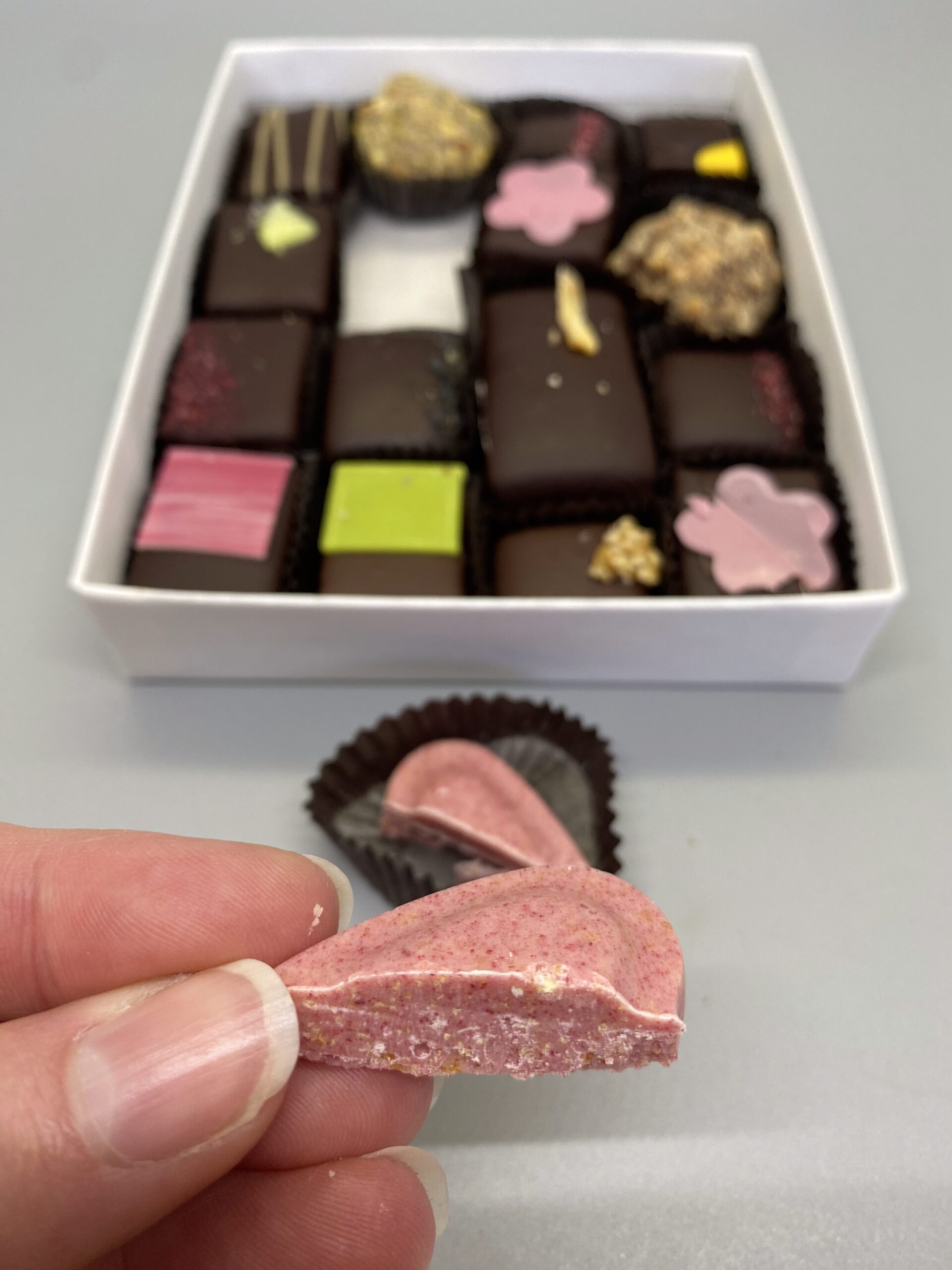 🌸 Cherry blossom- a flavor zero: can’t taste any floral flavor, just the chocolate. A tiny bit of bitterness but overall not bad.