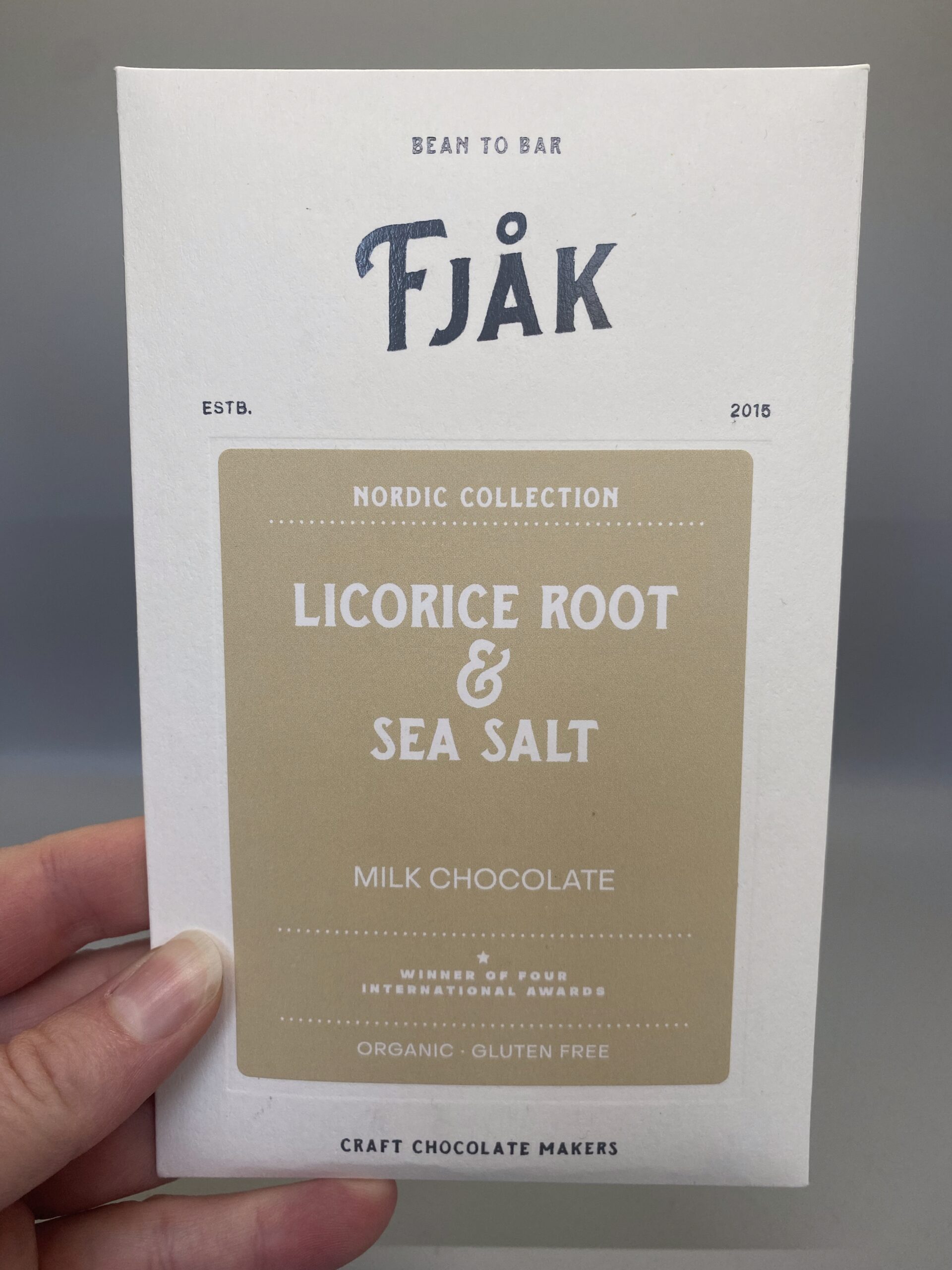 But Fjåk fixed that for me! This bar is a perfect gentle blend of this distinctive flavor profile. At first the dominant taste is a lovely creamy milk chocolate. The licorice root sneaks up on you! It grows as the finish develops, but remains a smooth, balanced fennel flavor instead of what might come to mind when you think “Norwegian black licorice”. It’s not aggressive, rather perfectly balanced with the sweet milk chocolate and hint of salt.