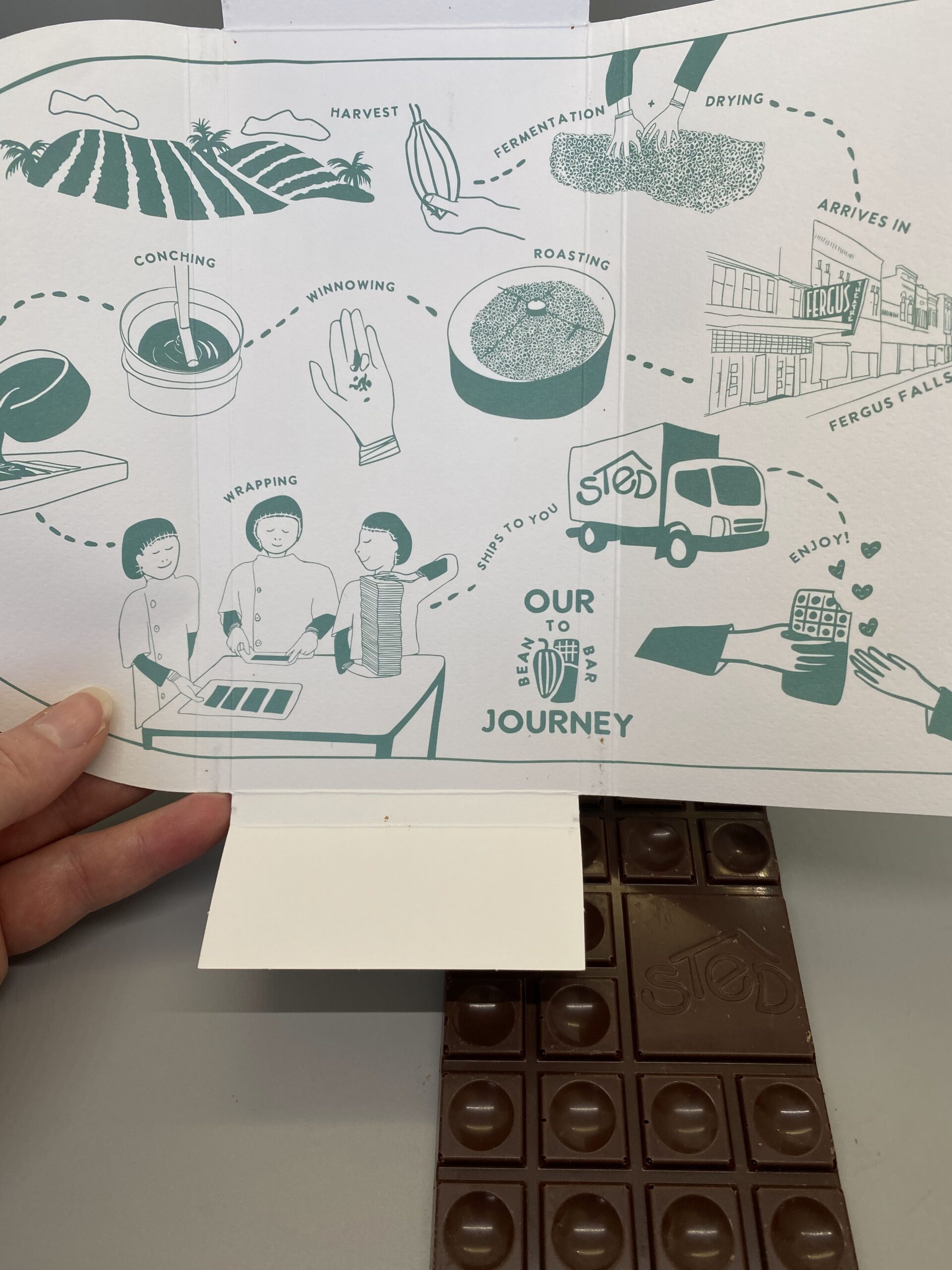 Interestingly Sted says one of their guiding principles is to “Honor Place”, which I hoped meant transparency & discussion on bean origin. Alas, any hint of bean origin is absent from the packaging, though in messages with the maker I was informed beans come from a variety of origins including El Valle, Duarte, El Romano and a co-op of small farmers in Haiti. It sounds like they are trying to source from small farmers, which is good and I understand the changeability of sourcing makes it hard to keep up to date on pre-printed bar packaging.