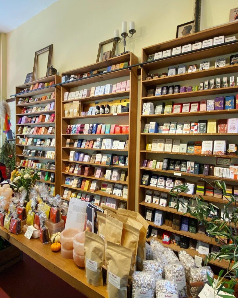 Just LOOK at that entire wall of gorgeous chocolate bars. Itâs like my bookshelf of bars only BIGGER- I get giddy as a schoolgirl walking in here! The Meadow (I visited their Portland 23rd Ave. location) also sells specialty salts, bitters, and other condiments. But letâs be honest, the chocolate is a huge star of the show. Itâs a great way to get inspired and try new makers. They even sort their bars like I do mine on the bookshelf: first case is inclusion/flavored bars, second is milk/white chocolate, and the third is single origin bars. I highly recommend checking them out: they have 3 Portland locations, one in NY and even one in Tokyo! I saw many old favorites this trip as well as tried some new gems. I canât wait to share about my haul- stay tuned!