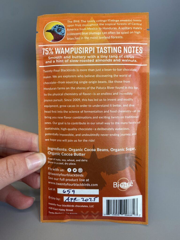 I LOVE me an earthy bar, and this one is a lovely coaster of flavor! I wish I would have bought another bar from Twenty Four Blackbirds, as I’m intrigued to try some of their other origins!